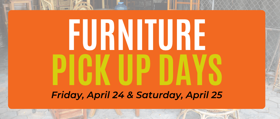 Live within 10 miles of IOCP? This two-day Free Furniture Pick Up event makes it even easier to donate!