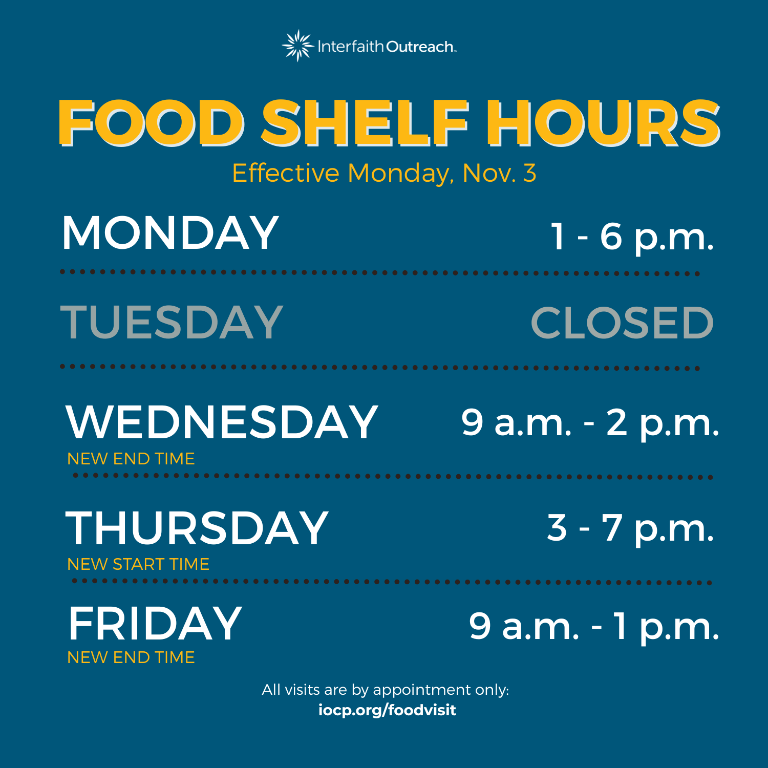 IOCP’s food shelf provides no-cost food, household and hygiene essentials to stretch your budget.